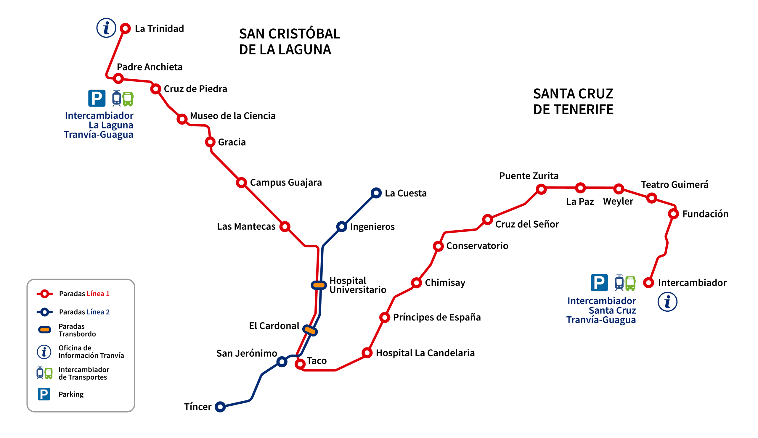 La Línea 2, con un trazado transversal a la anterior, circula entre zonas de alta densidad de población de estos municipios, como son La Cuesta, Taco y Tíncer.